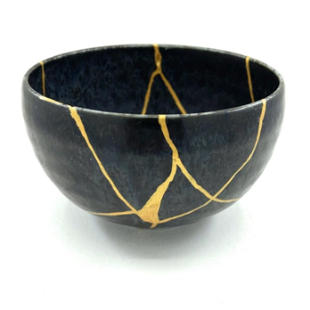 On Sunday, we considered one way of thinking about this verse is through an illustration afforded to us by Kintsugi art. Kintsugi is an ancient Japanese art form that finds beauty in restoring broken pottery, glass, and dishware, not by hiding the cracks, but by highlighting them with gold. Restorations according to this method are fully functional, but also become prized pieces of art, each with golden veins running across the surface as in the photo below.